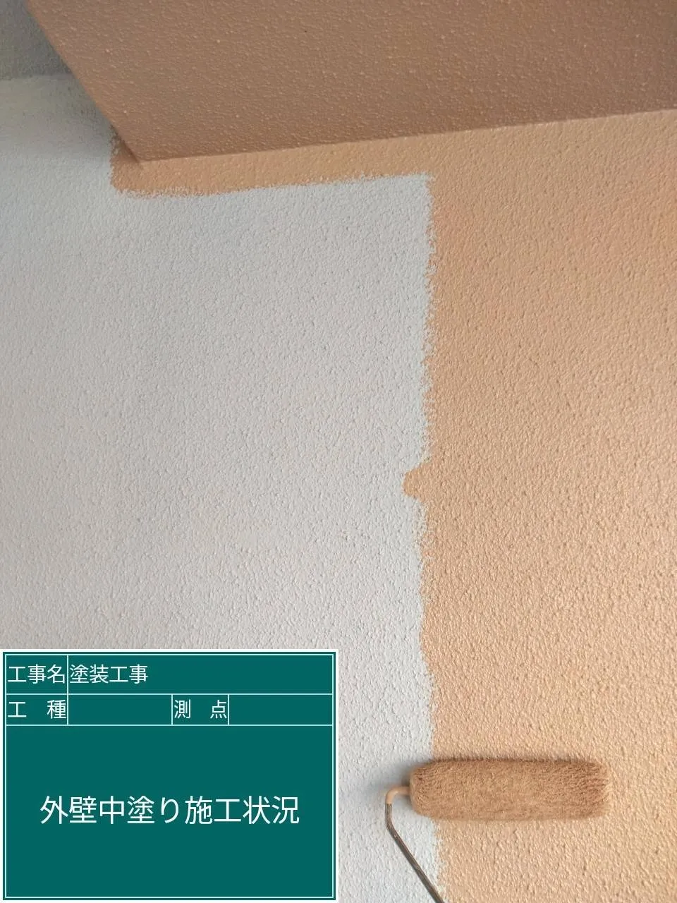 大阪府高槻市で外壁塗装の中塗を、施工しました。