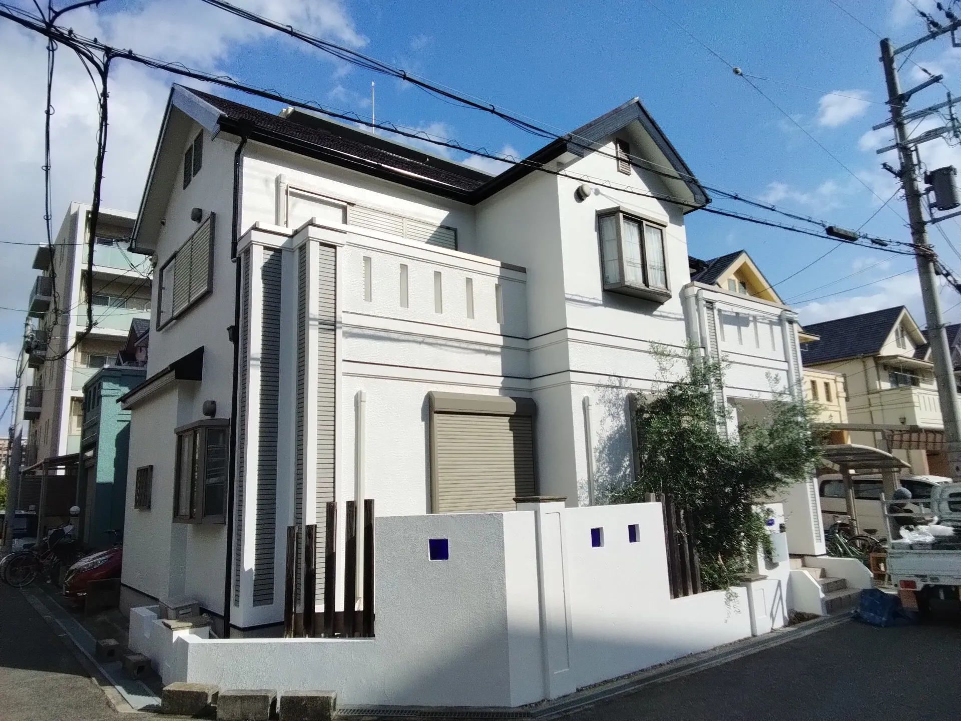 大阪府吹田市で屋根、外壁フル塗装、ベランダ簡易防水、外塀を、完工しました。