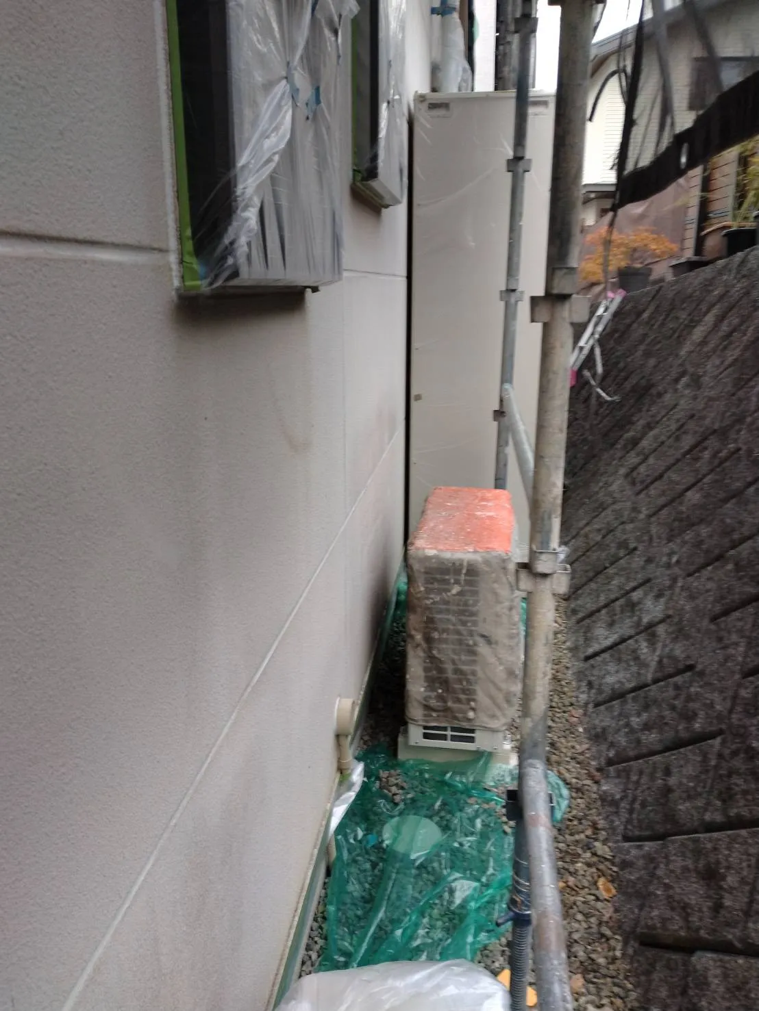 大阪府高槻市で外壁フル塗装の養生を施工しました。