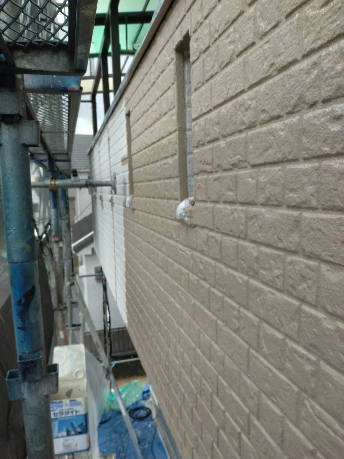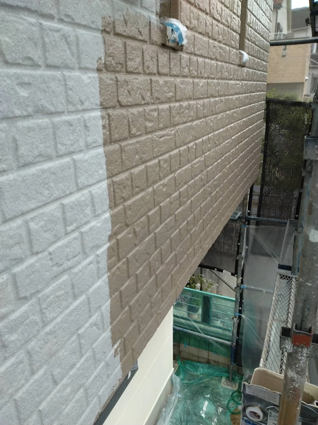 大阪府高槻市で外壁フル塗装の中塗、上塗を施工しました。