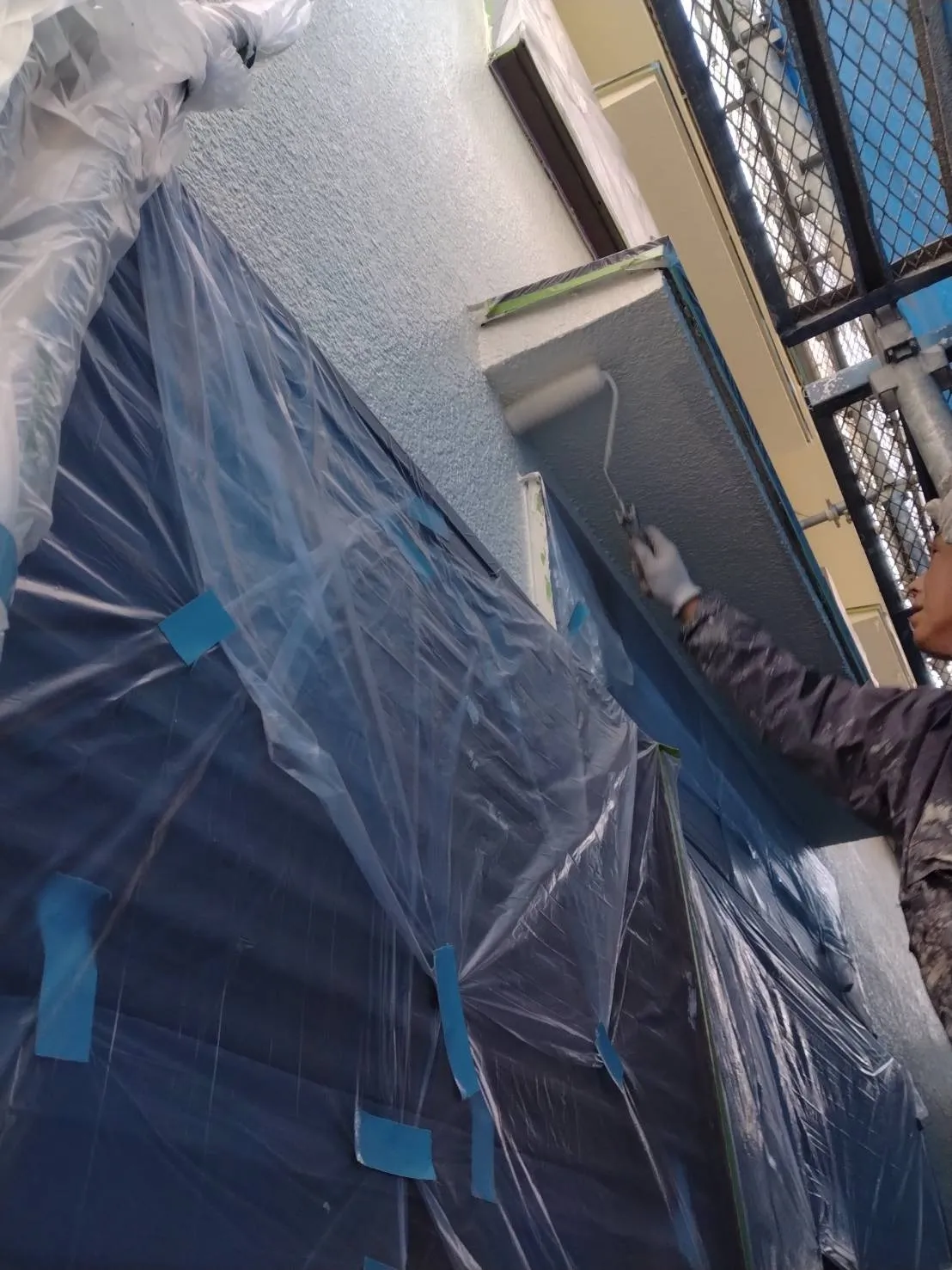 兵庫県宝塚市で外壁フル塗装の中塗を施工しました。