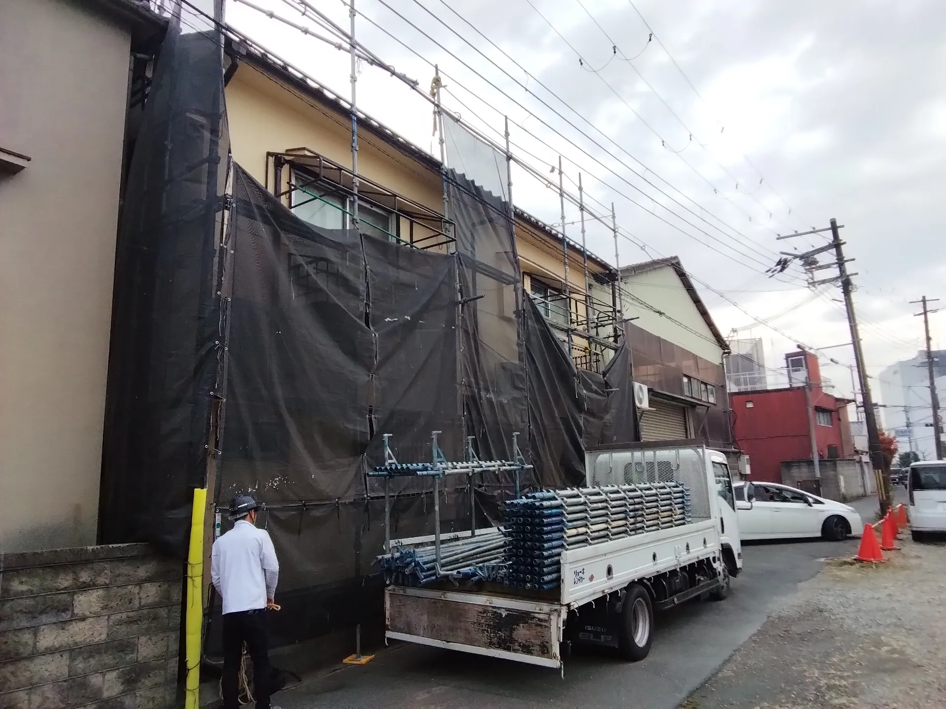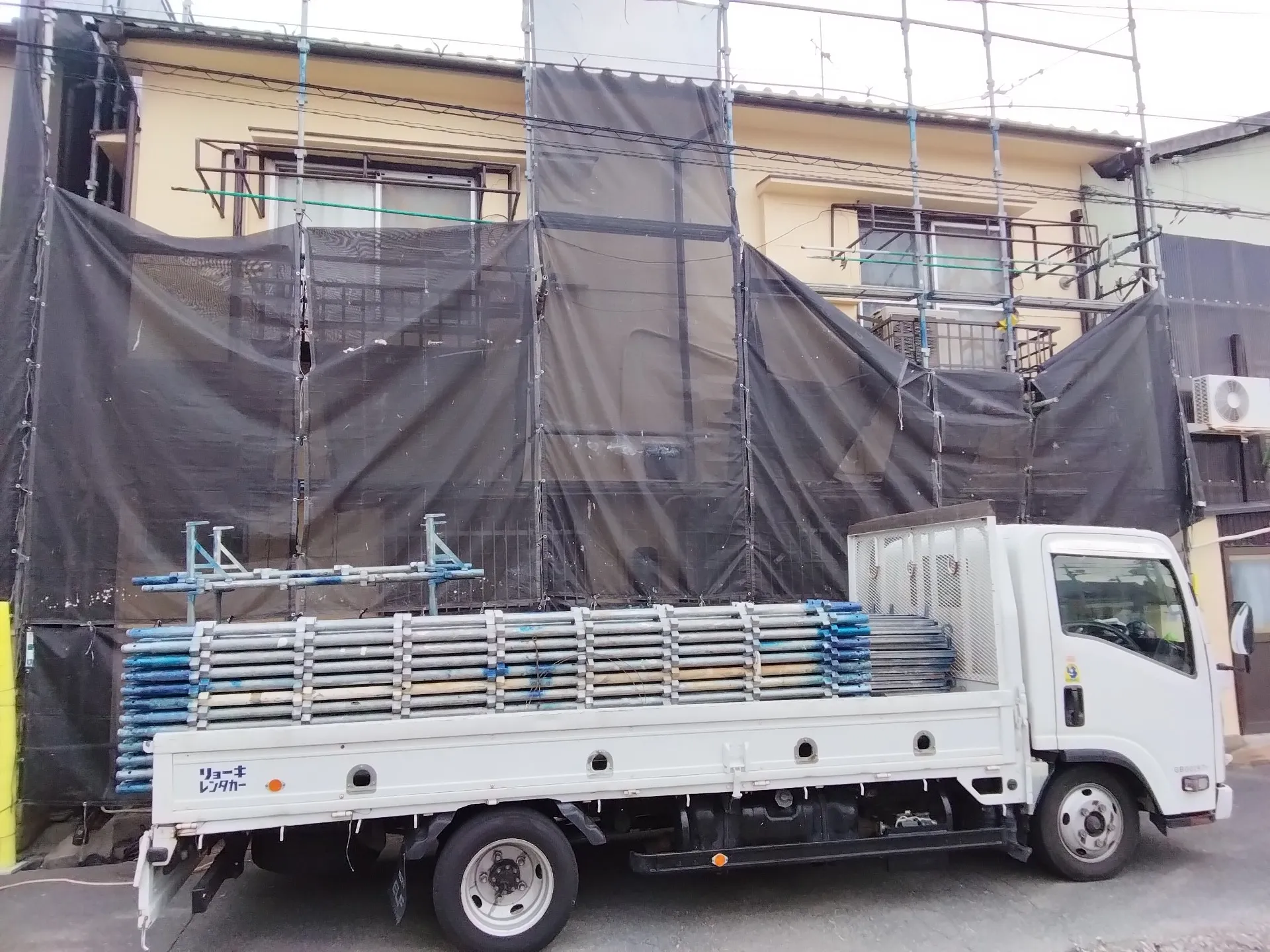 大阪府吹田市で外壁フル塗装の足場解体を施工しました。