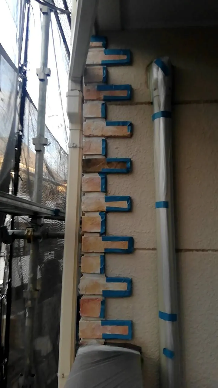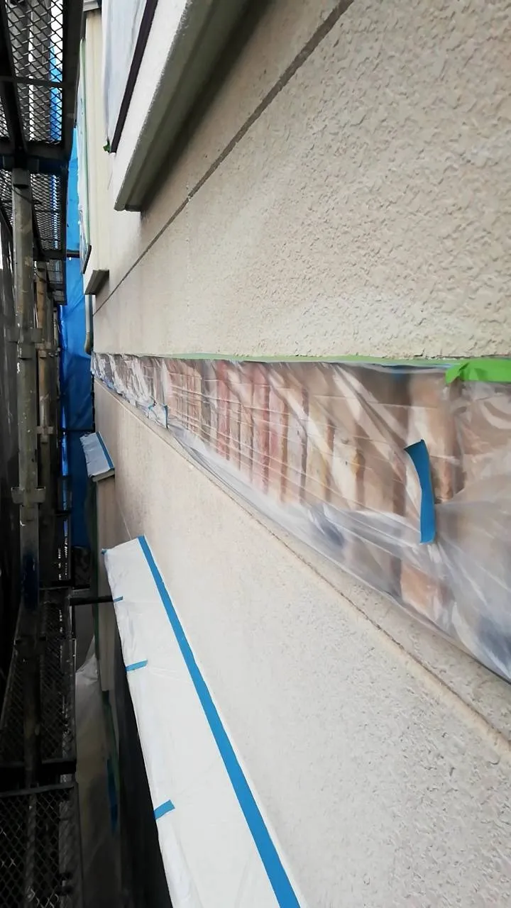 大阪府吹田市で外壁フル塗装、屋根塗装、シーリング工事、ベランダ簡易防水の養生を施工しました。