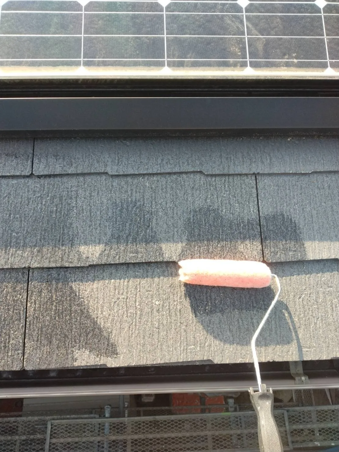 大阪府茨木市で屋根塗装工事の下地処理、下塗りを施工しました。