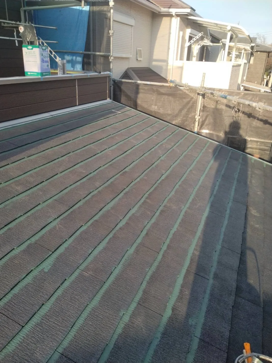 大阪府茨木市で屋根塗装工事の中塗を施工しました。