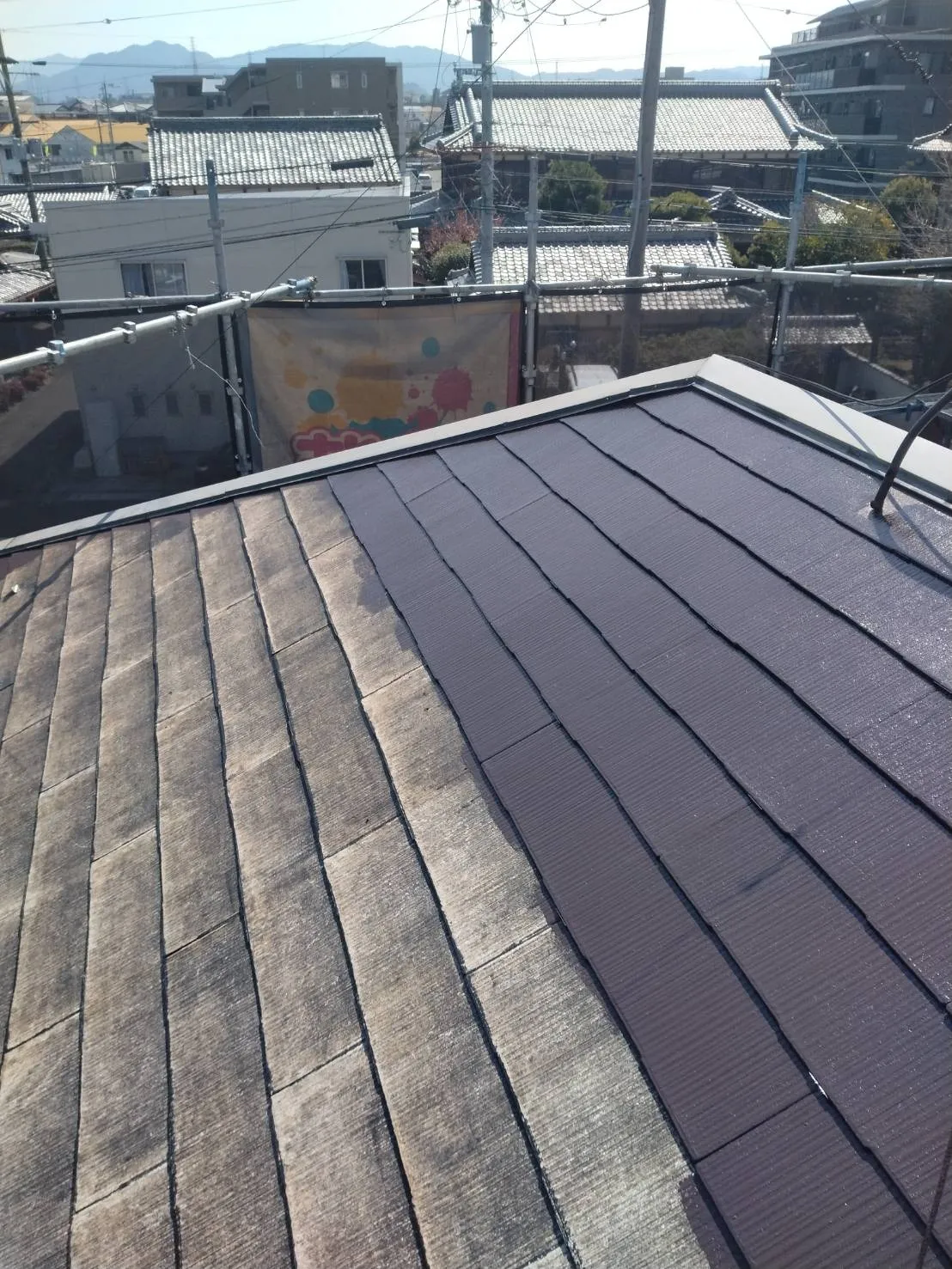 滋賀県草津市で外壁フル塗装、屋根塗装、シーリング工事、ベランダ簡易防水の外壁中塗、屋根中塗を施工しました。