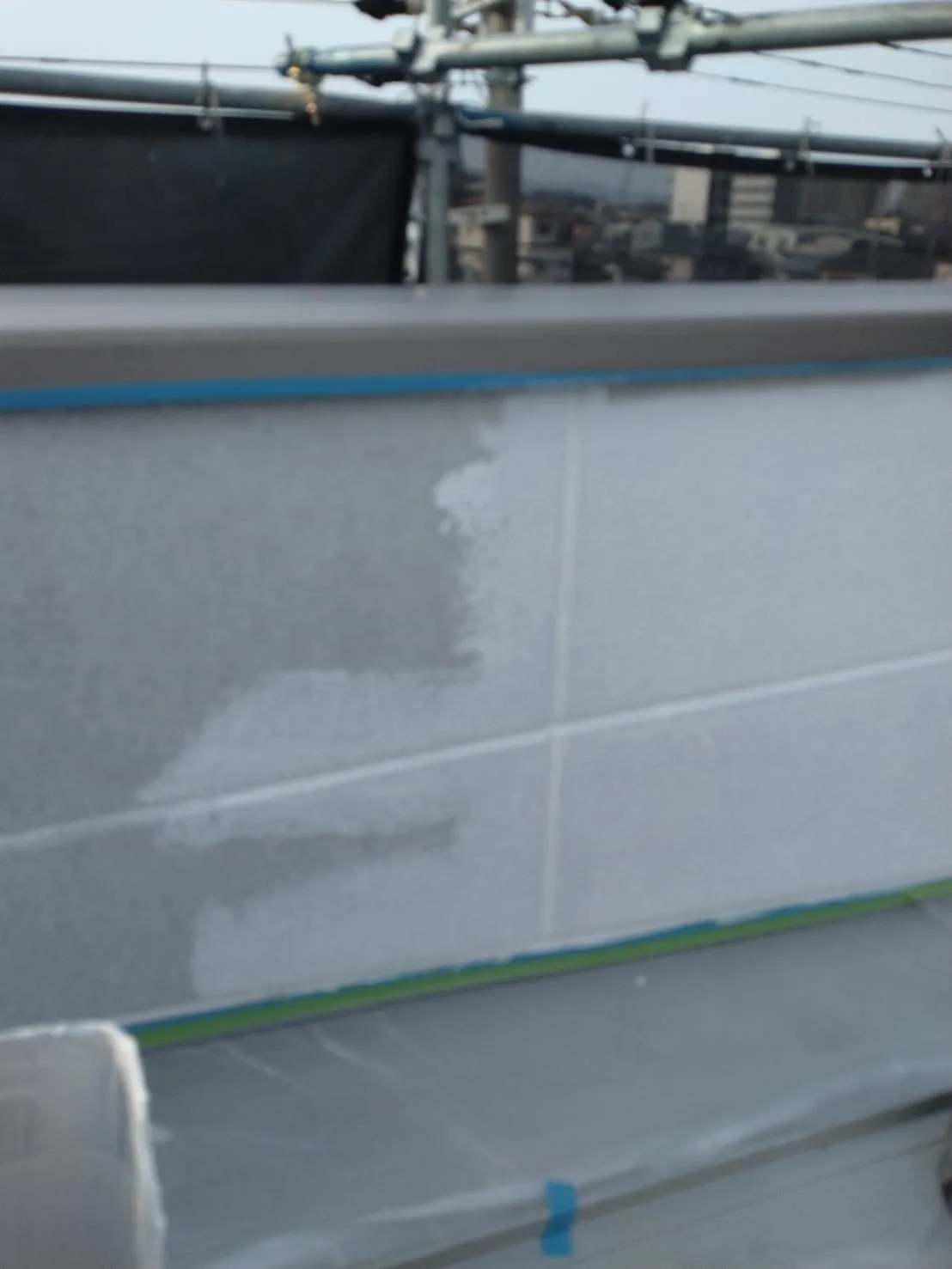 大阪府吹田市で外壁フル塗装、屋根塗装、シーリング工事、ベランダ簡易防水の屋根上塗りを施工しました。