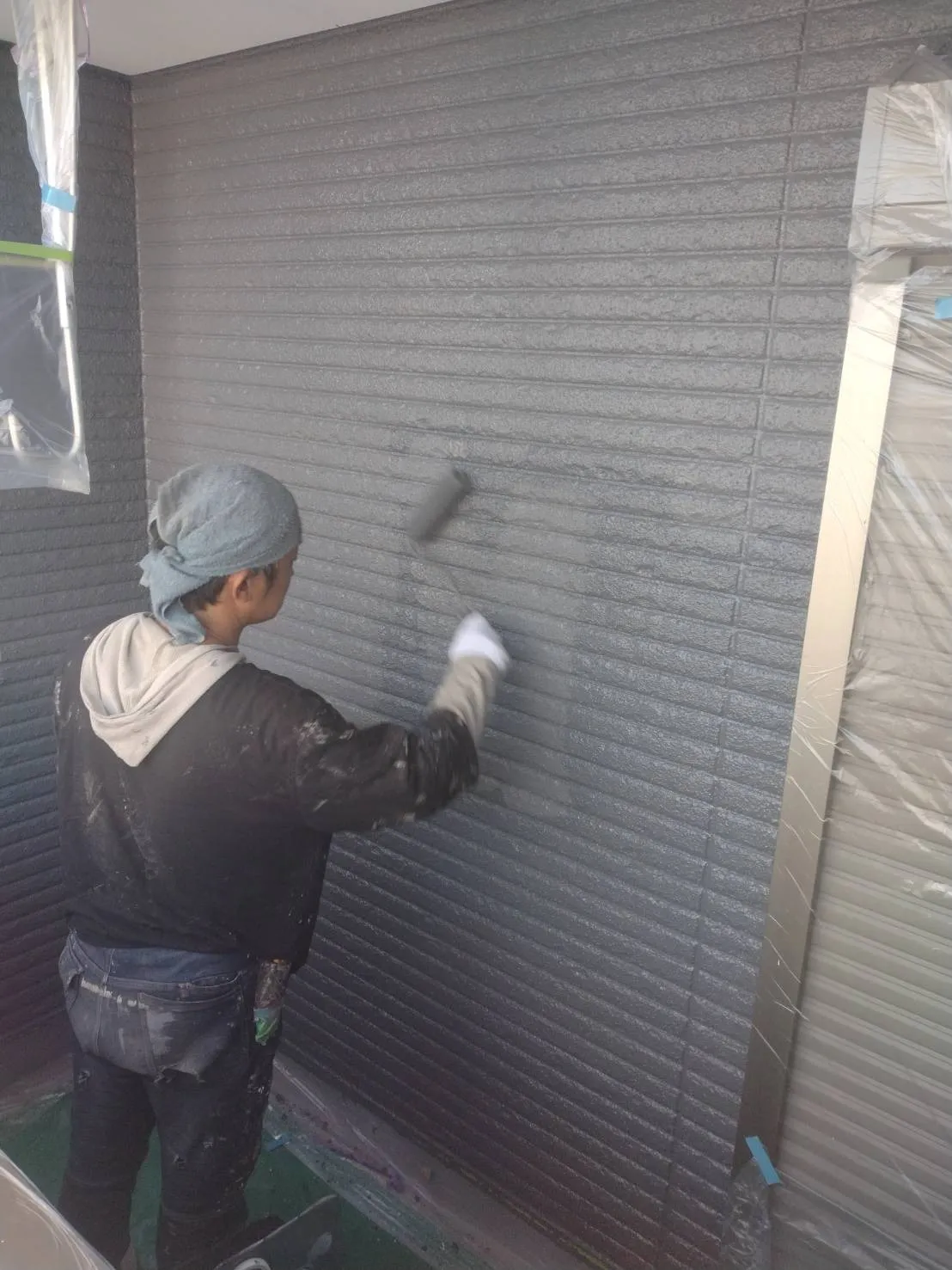大阪府吹田市で外壁フル塗装、屋根塗装、シーリング工事、ベランダ簡易防水の中塗を施工しました。