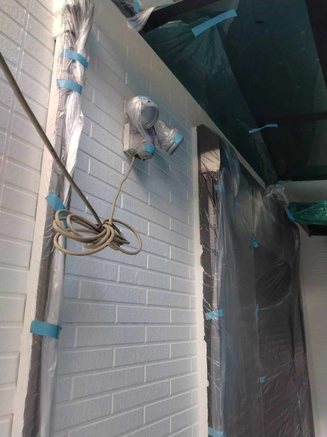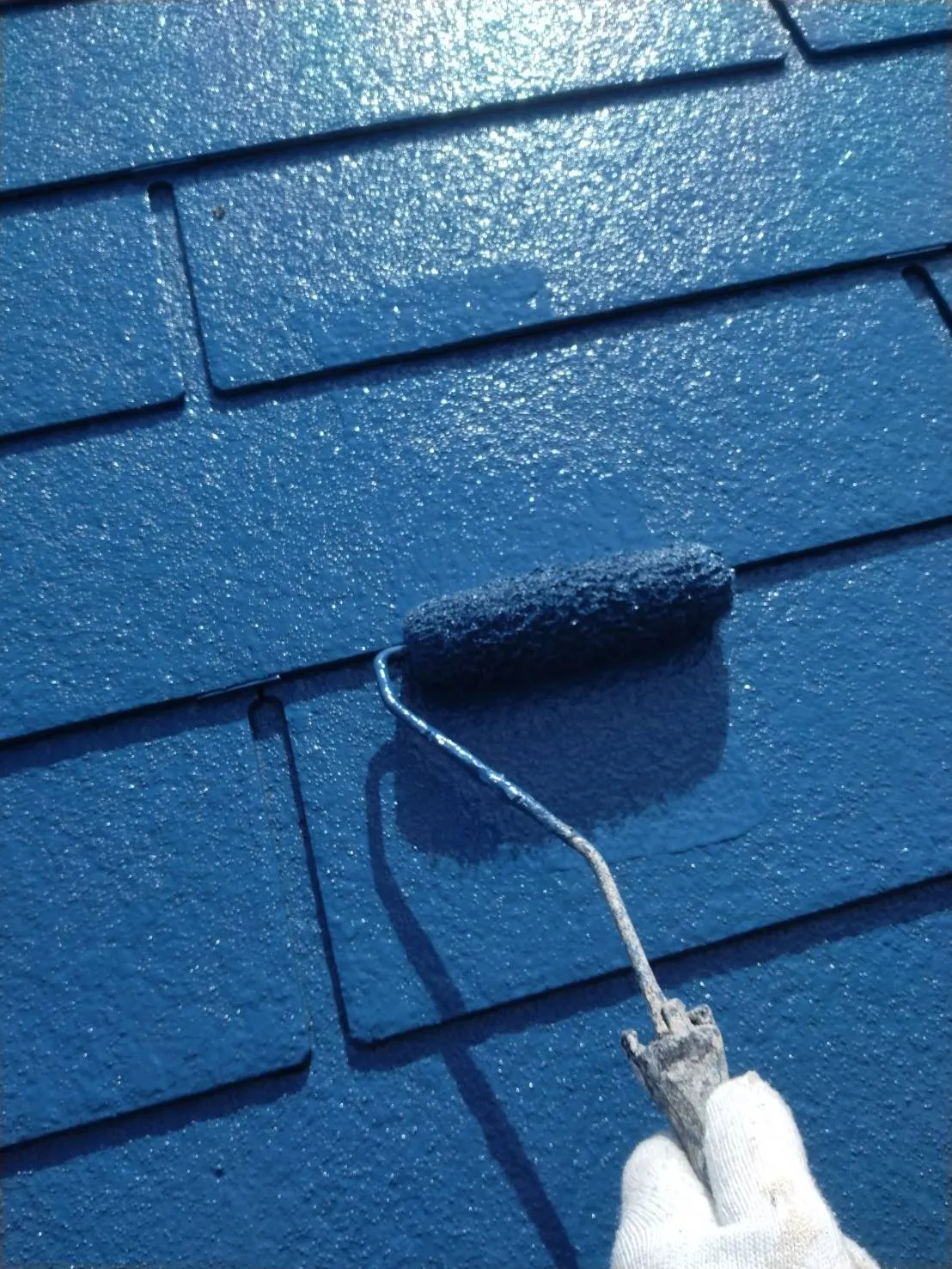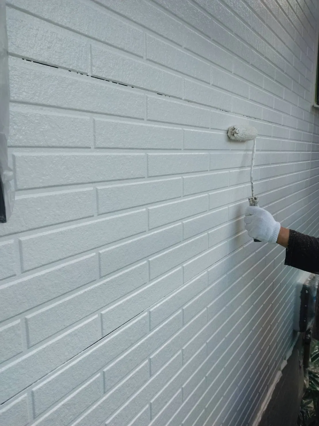大阪府高槻市で外壁フル塗装、屋根塗装、シーリング工事、ベランダ簡易防水工事の屋根の上塗り、外壁の中塗を施工しました。